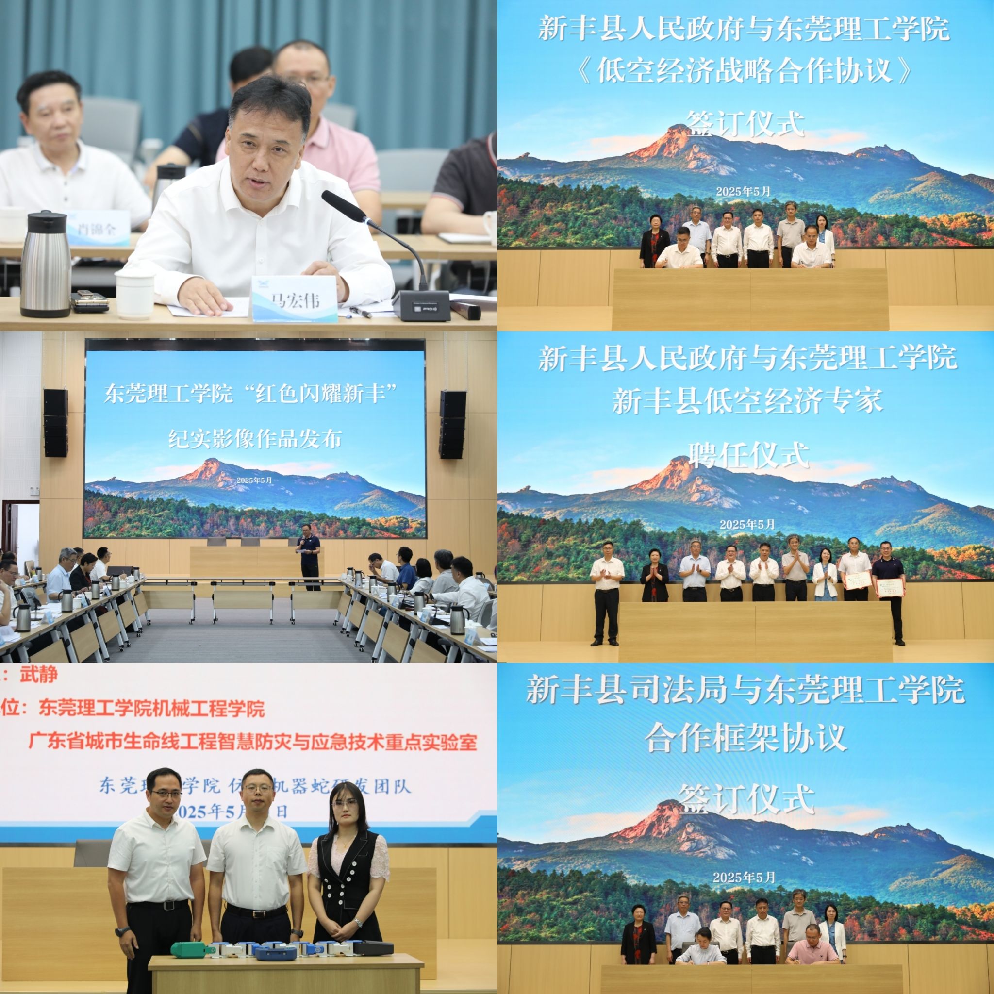 与会人员一同观看新丰县2024年“双百行动”工作开展情况专题视频,听取“双百行动”驻县服务队工作汇报。会上,我校与新丰县人民政府签订低空经济战略合作协议、与新丰县司法局签订合作框架协议,我校房学谦教授、魏亚东教授受聘为新丰县专家库专家。文学与传媒学院策划拍摄的“红色闪耀新丰”纪实影像创作作品在会上发布,广东省城市生命线工程智慧防灾与应急技术重点实验室和机械工程学院、新丰供电局联合研发的“管道检测智能机器蛇”也同步交付新丰供电局。