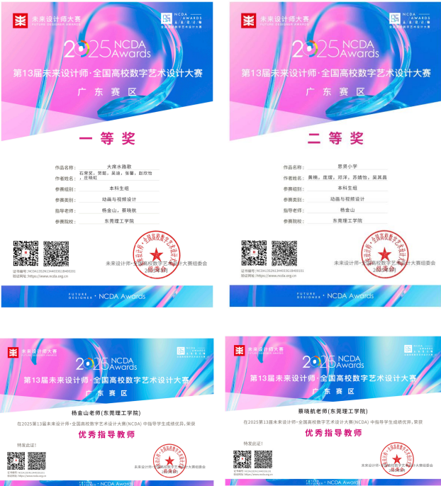 近日,我校文学与传媒学院师生团队创作的纪实影像作品《大席水路歌》在NCDA未来设计师全国高校数字艺术设计大赛(教育部全国大学生学科竞赛清单赛事)广东赛区中荣获一等奖,同期作品《思贤小学》获二等奖,指导教师杨金山、蔡晓航获“优秀指导教师”称号。