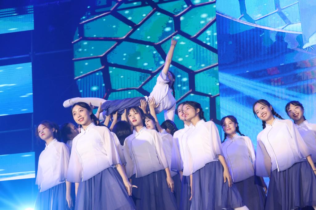 晚会伊始,各学院代表旗手持院旗入场,舞动的旗帜阵阵有力,迎风飘展,象征着“担当、学习、超越”的坚定信念涌现。成洪波上台为文化艺术节揭幕,吕琦元、李忠红以及校文化艺术节组委会成员、校党委宣传部、校团委、教务处相关负责人及学生代表上台见证。