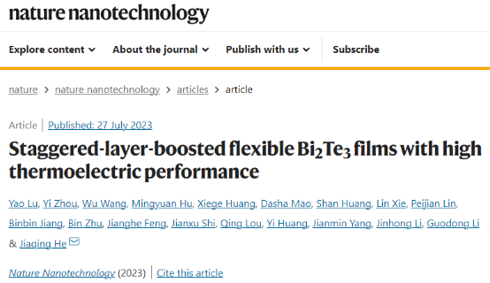 近日,九九精品视频一区在线久久久久久久久久毛片精品美女|国产99久久久久久免费看|中文精品99久久国产|国产69精品久久久久9999|精品久久久久久中文字幕无码|亚洲熟妇无码久久精品国产精品99|精品国产天堂综合一区在线逯瑶副研究员联合南方科技大学物理系提出一种交错层结构设计并实现了高柔性和高热电性能的Bi2Te3基单晶薄膜材料与器件,逯瑶副研究员为第一作者。相关成果以“Staggered-layer-boosted flexible Bi2Te3films with high thermoelectric performance”为题发表于Nature Nanotechnology。