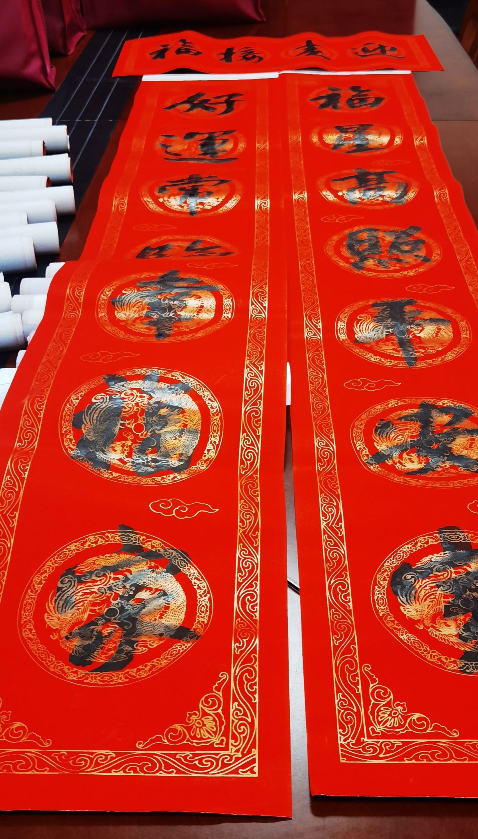 本次送春联活动由校工会主办、校教职工书画协会承办、校教师村业主委员会协办。校教职工书画协会的杨万江、杨继龙、李益民、宋跃、莫振轩五位老师,为全校教职工妙笔挥毫写春联。为了降低传染风险,本次活动采用线上预订线下取的方式进行,老师们需提前在线上预订春联,同时还可以指定内容和写春联的书法家。