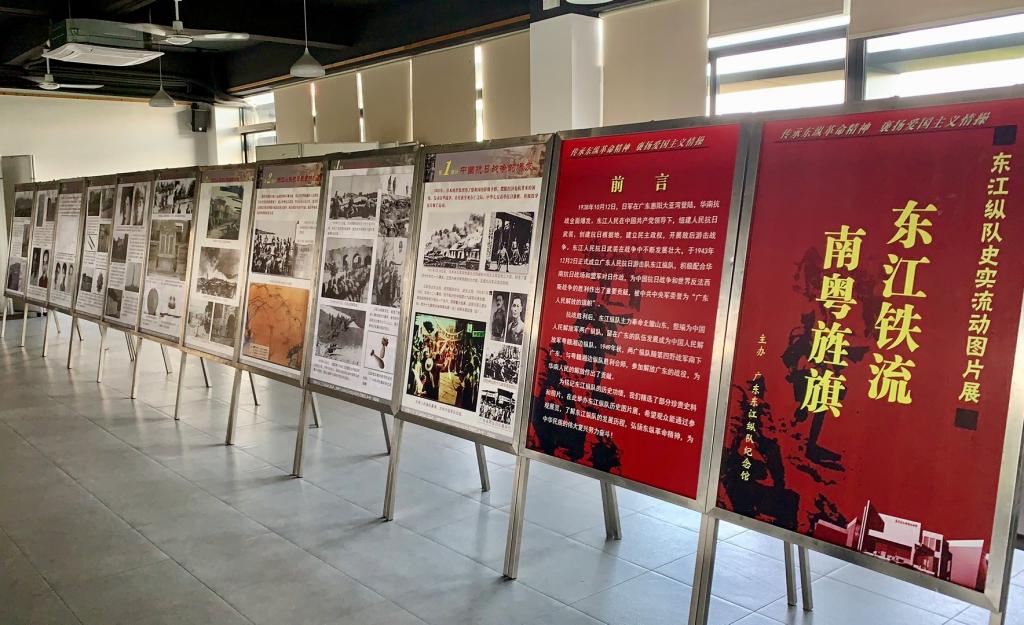 1938年10月12日,华南抗战全面爆发。东江人民在中国共产党领导下,组建人民抗日武装,创建抗日根据地,建立民主政权,开展敌后游击战争。1943年12月2日正式成立广东人民抗日游击队东江纵队,为中国抗日战争和世界反法西斯战争的胜利作出了重要贡献。1949年秋,两广纵队随第四野战军南下广东,与粤赣湘边纵队胜利会师,参加解放广东的战役,为华南人民的解放作出了贡献。本次流动图片展通过图片和文字完整地展示了东江纵队革命历史,弘扬东纵革命精神,培育爱国情怀。
