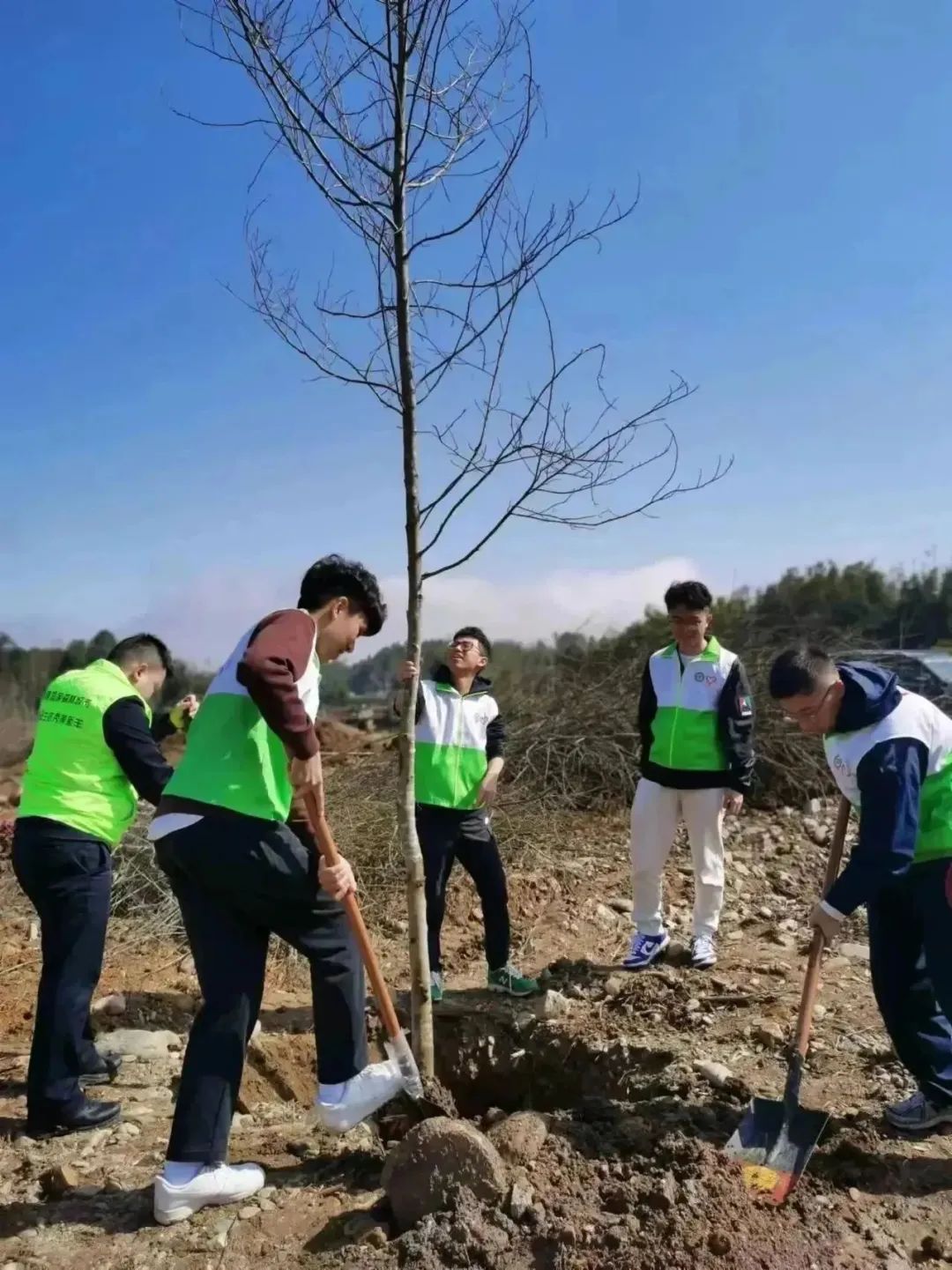 在学校首批共建项目之一“和美乡村”共建示范点里湖镇富美村,学校团委联动普宁团市委和揭阳职院团委,组织师生代表到学校教育集团成员校里湖镇富美小学,和富美小学校长及师生、村委会干部一同参与义务植树活动,共种下紫花风铃木。通过大手拉小手,引领爱绿植绿护绿新风尚,为绿美普宁、和美乡村贡献莞工青年力量。