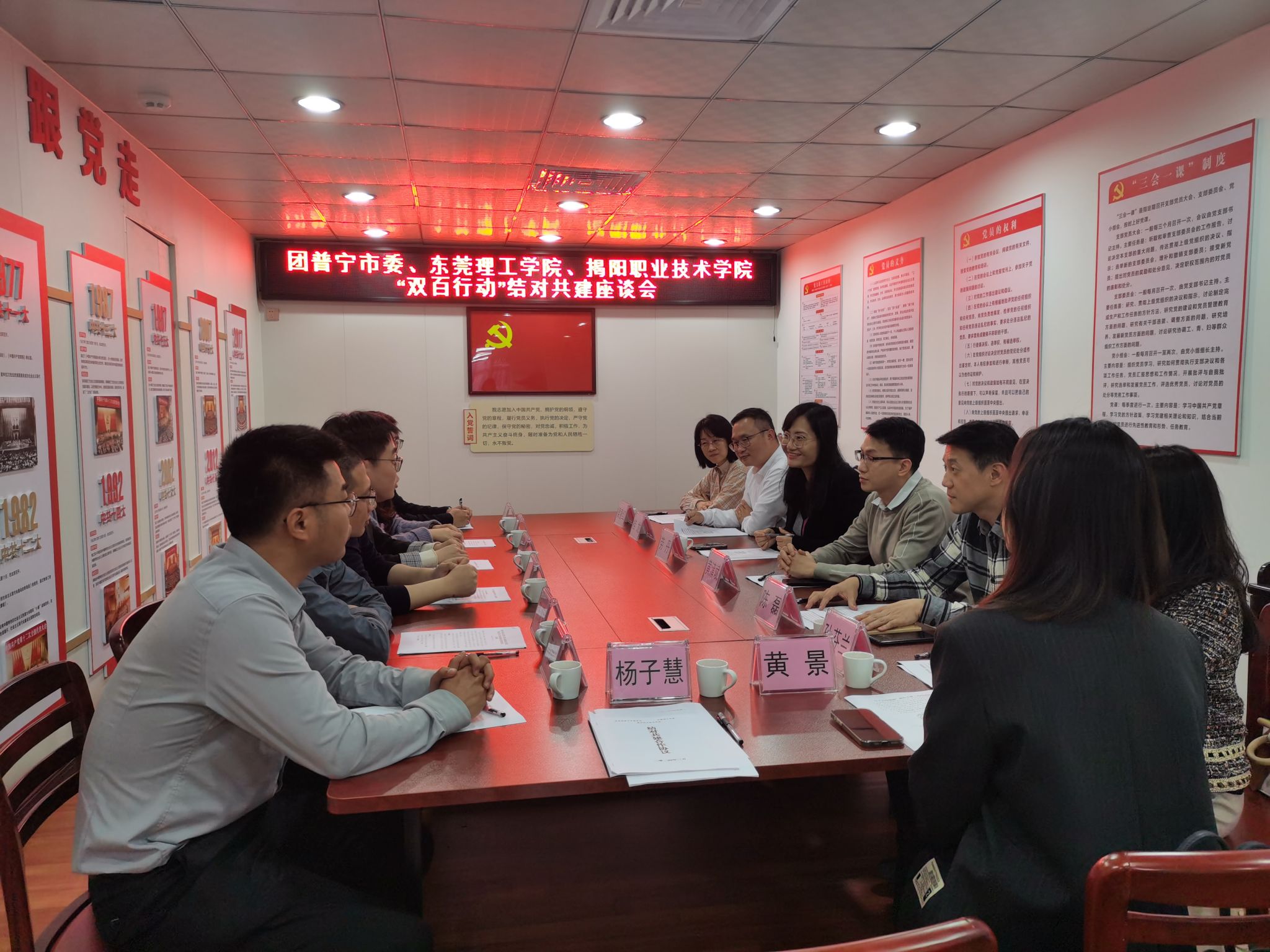 3月19日-3月20日,校团委书记劳丹率“绿美莞工青年突击队”前往揭阳普宁市,与普宁市、揭阳职业技术学院就“双百行动”的建设需求、资源共享、发展规划等初步达成了结对共建合作协议。