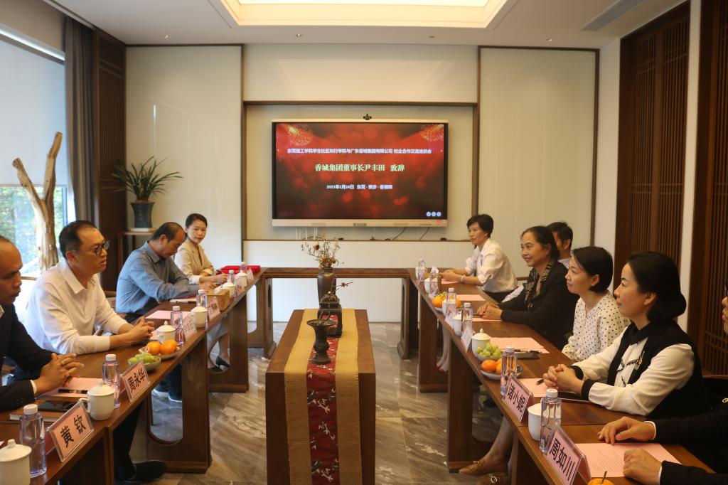 2月24日,学生社区知行学院与广东香城集团校企合作交流洽谈会在东莞香博园举行,校党委委员、宣传部部长邹琼,知行学院执行院长苏亚玲,环建学院党委副书记诸小妮等一行与东莞市沉香协会会长、广东香城集团有限公司董事长尹丰田,香城集团有限公司营销总监周永华,香博园园区负责人尹路轩等参会。
