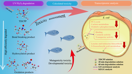 磷酸三(2,3-二氯丙基)酯(TDCPP)在水生环境中普遍存在,对生态环境和人体健康造成了潜在威胁。紫外光驱动过氧化氢技术(UV/H2O2)被广泛用于去除水中难降解污染物。因此,本文旨在深入研究UV/H2O2对TDCPP的降解机理、降解路径以及毒性变化。结果表明,UV/H2O2技术能够高效降解TDCPP,且TDCPP的降解遵循一级动力学。探针法和EPR结果表明·OH是主导TDCPP降解的关键活性物种。此外,本研究共鉴定出12种降解副产物,其中包括断键产物、羟基化产物和氧化产物。毒理学计算结果表明,绝大多数TDCPP降解副产物比其母体呈现出更强的毒性效应(如致突变性和发育毒性)。高通量测序结果进一步证明,相比于零时刻溶液与60 min UV/H2O2降解溶液,经过20 min UV/H2O2处理的TDCPP溶液具有更强的细胞毒性。本研究结果强调了审视UV/H2O2体系中降解副产物毒性的重要性,并为UV/H2O2高效去TDCPP的可行性及安全性提供基础理论依据。
